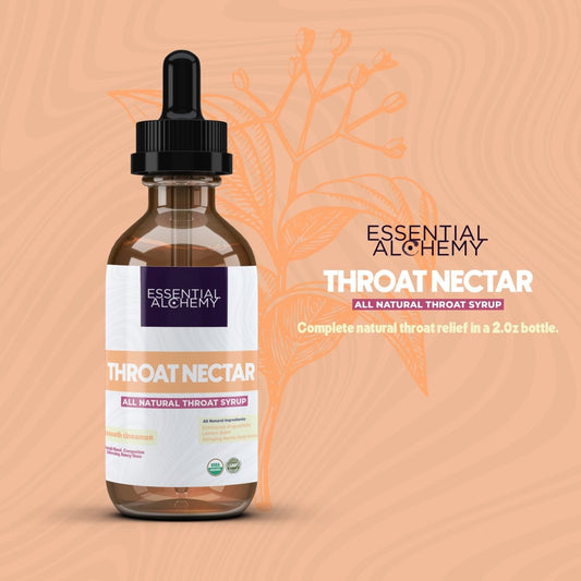 Introducing our newest member to the Essential Alchemy. This natural Throat Syrup provides relief in a 2.0oz bottle. Great for cold/flu and the seasonal gunk.